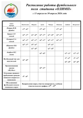 Расписание футбольного поля